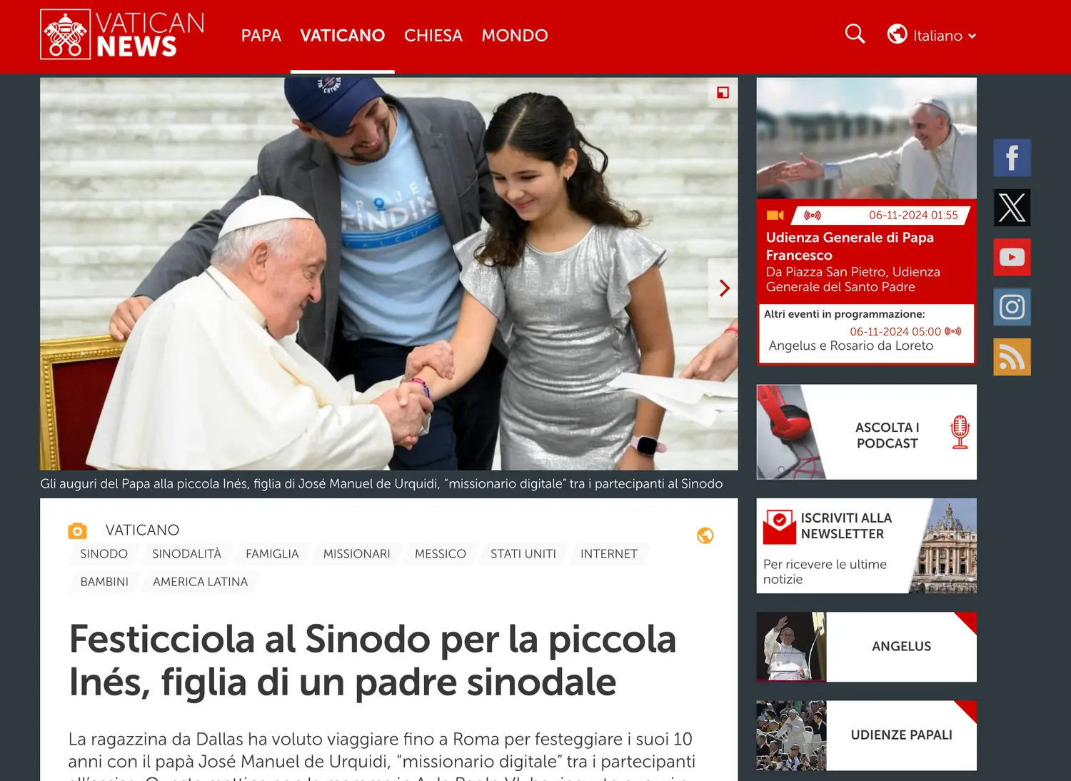 A short Vatican News clip of one of the times I spoke in front of the Pope and bishops from all over the world about the importance of being a missionary Church online.