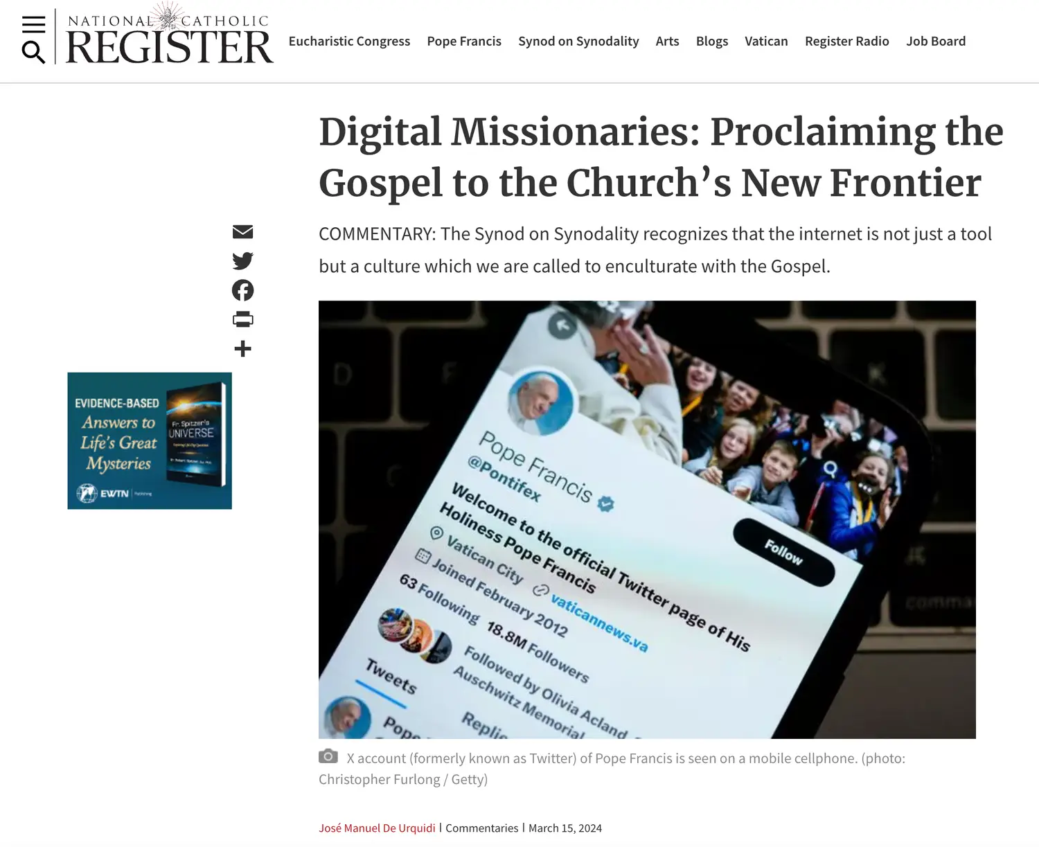 COMMENTARY: The Synod on Synodality recognizes that the internet is not just a tool but a culture which we are called to enculturate with the Gospel. https://t.co/AGizwzPxIN