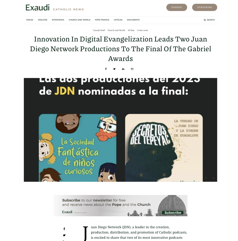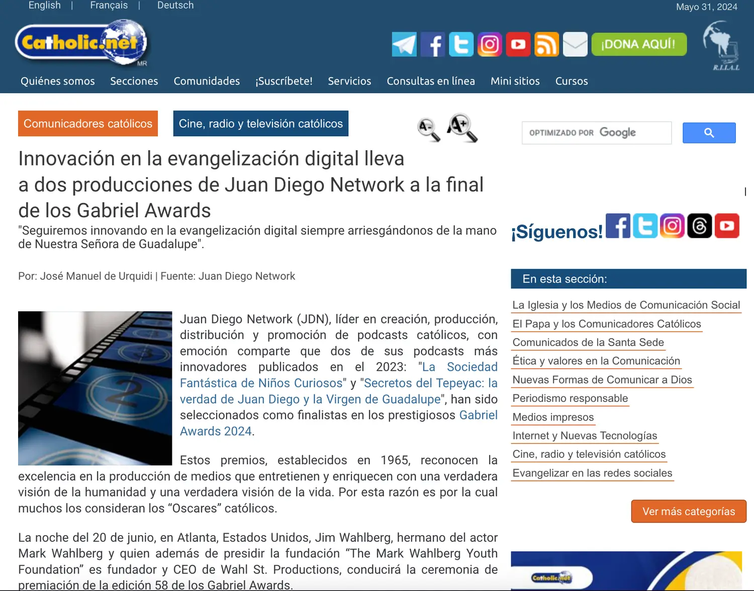 JDN is one of the initiatives of Juan Diego & Friends Inc, a 501c3 established in Texas.